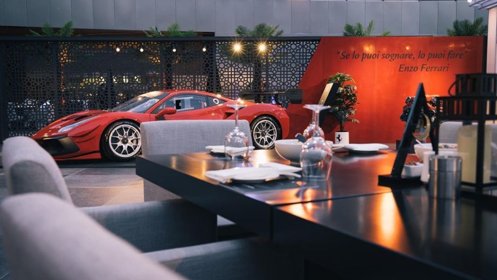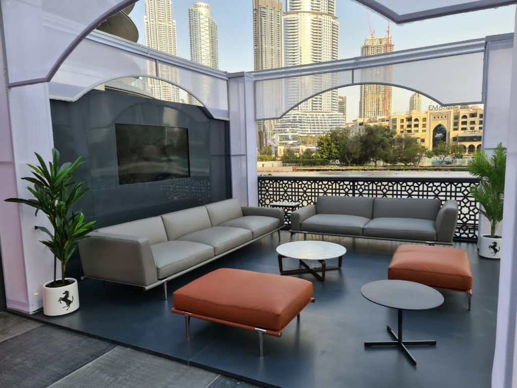 Ferrari is an iconic Italian sports ride, internationally synonymous with powerful performance, sleek design and innovation. And the Ramadan Lounge was required to carry this strong identity and express it boldly, while also conveying the festive nature of the Holy month, and of course the exclusivity of the Ferrari ownership.