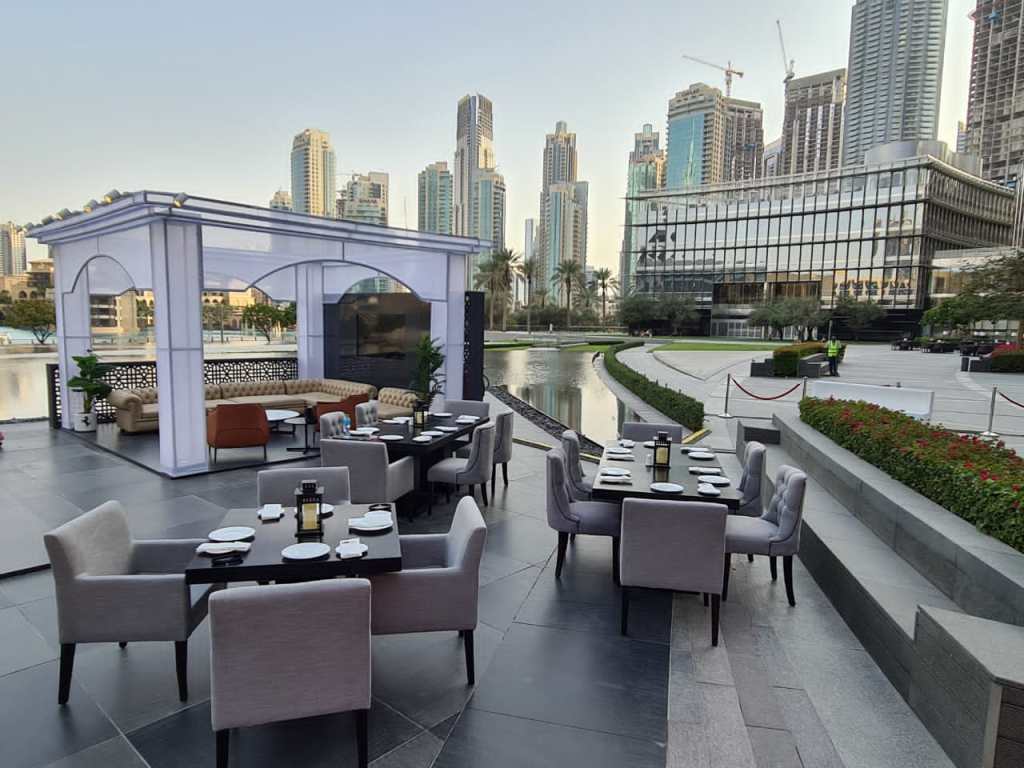 The lounge was initially planned as an indoor lounge, but due to Covid-19 restriction, it was later relocated to an outdoor area in Armani Hotel terrace, at the equally iconic Burj Khalifa.