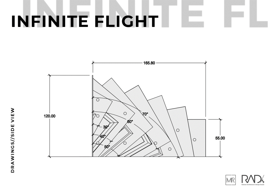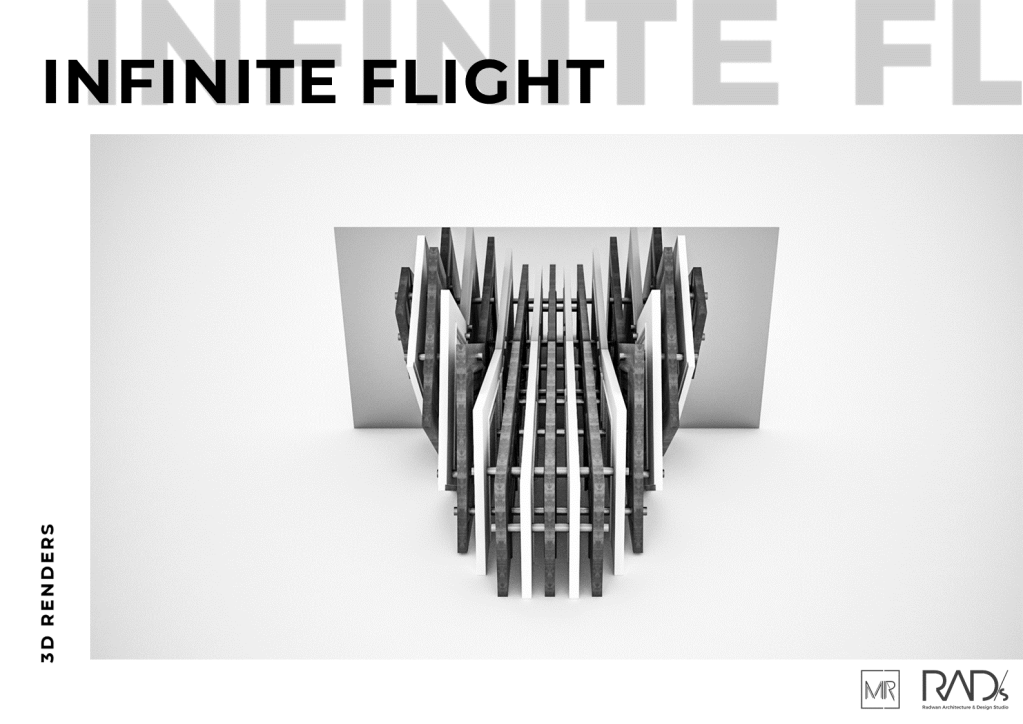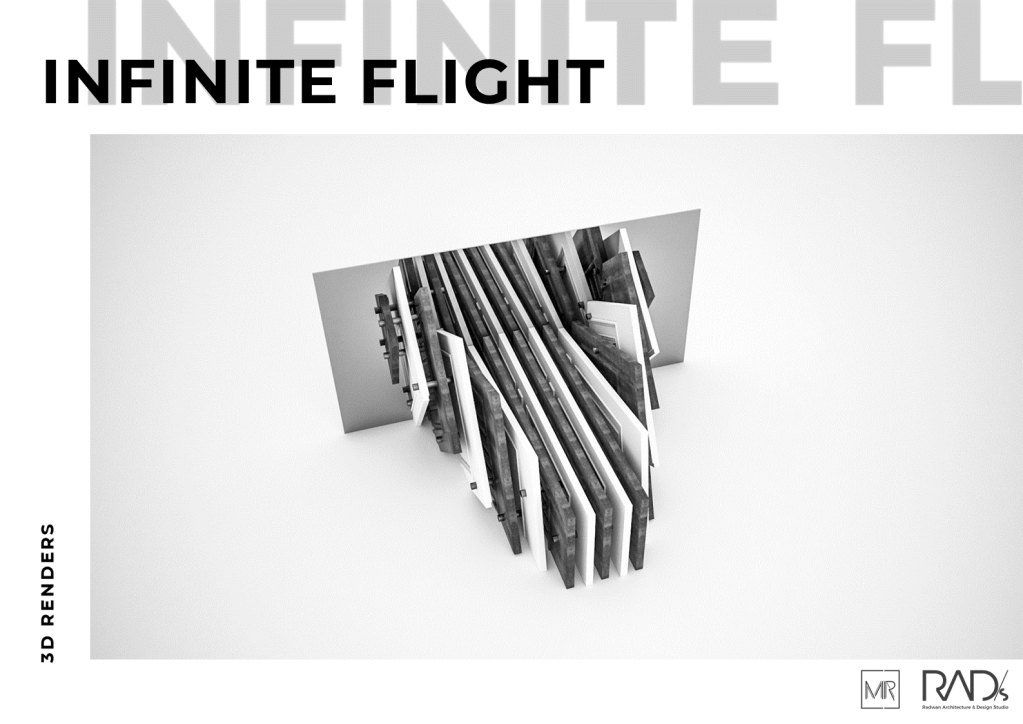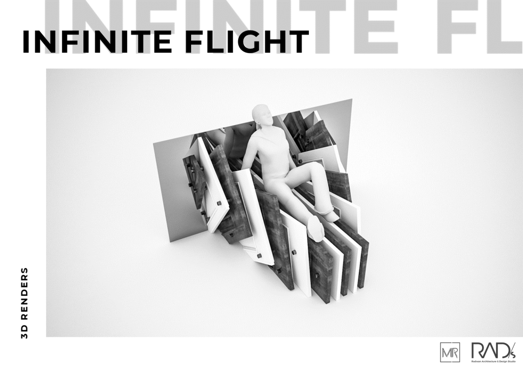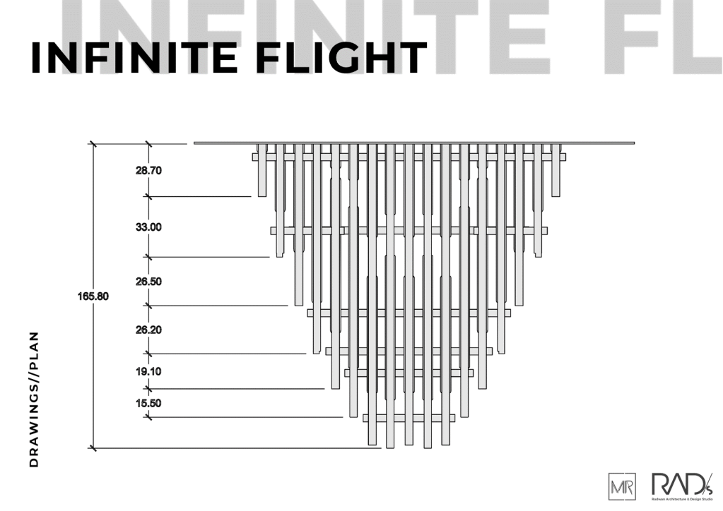 The overall form of the outdoor seating is inspired by the flight of the Phoenix, the doors are trying to fly away, and the introduction of the mirror back is to give the feel of infinity & endlessness, a concept associated with the eternal cycle of death and rebirth of the Phoenix.