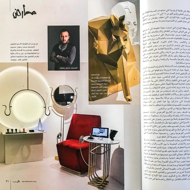 The project started in April 2019, as a design exploration. It was showcased in Cairo Design Awards, 2019 edition last November, and the World Youth Forum in December. It received coverage from El beit Magazine, in it’s January 2020 Issue.